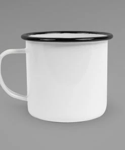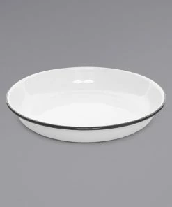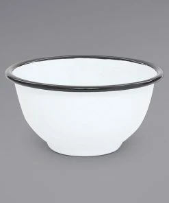 Crow Canyon Home V02BLA Vintage 16 Oz. White Round Enamelware Footed Bowl With Black Rolled Rim