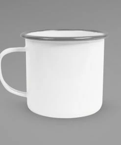 Crow Canyon Home V02GRY Vintage 16 Oz. White Round Enamelware Footed Bowl With Grey Rolled Rim