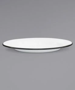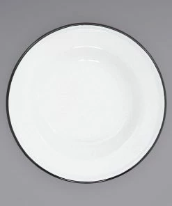 Crow Canyon Home V20BLA Vintage 10 1/4″ White Wide Rim Enamelware Footed Plate With Black Rolled Rim