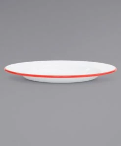 Crow Canyon Home V20RED Vintage 10 1/4″ White Wide Rim Enamelware Footed Plate With Red Rolled Rim