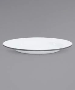 Crow Canyon Home V20GRY Vintage 10 1/4″ White Wide Rim Enamelware Footed Plate With Grey Rolled Rim