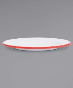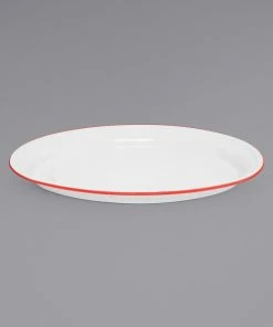 Crow Canyon Home V61RED Vintage 18″ X 13″ White Enamelware Oval Platter With Red Rolled Rim