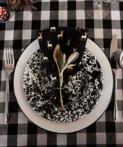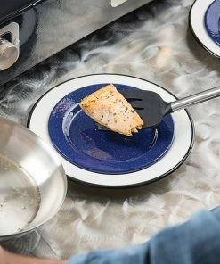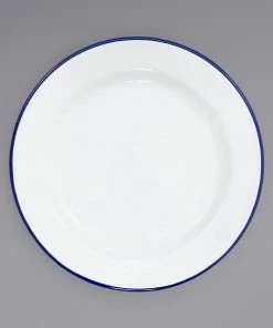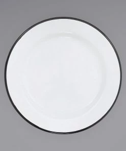 Crow Canyon Home V95BLA Vintage 12″ White Wide Rim Enamelware Plate With Black Rolled Rim
