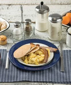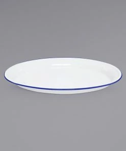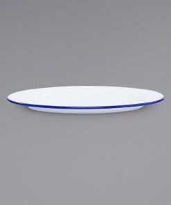 Crow Canyon Home V94BLU Vintage 11 7/8″ X 8 11/16″ White Enamelware Oval Plate With Blue Rolled Rim