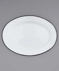 Crow Canyon Home V94BLA Vintage 11 7/8″ X 8 11/16″ White Enamelware Oval Plate With Black Rolled Rim