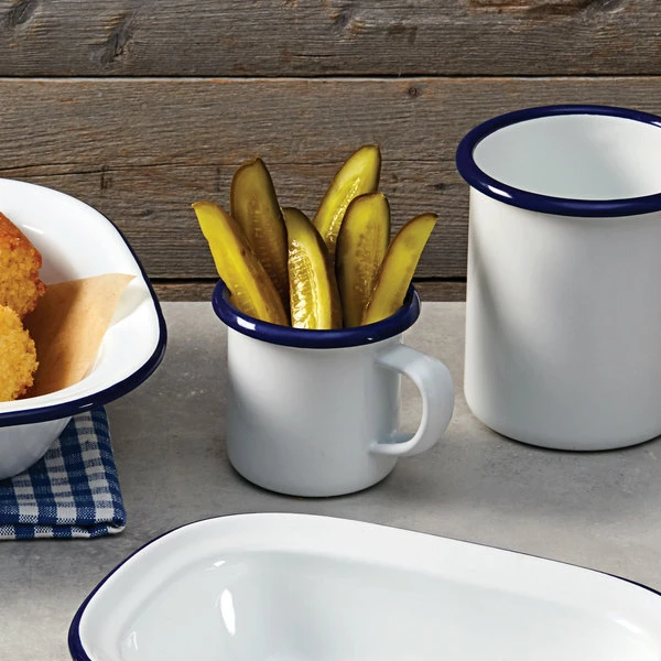 Be the first to review “American Metalcraft EWM6 6 Oz. White Enamel Mug With Blue Rim” Cancel reply
