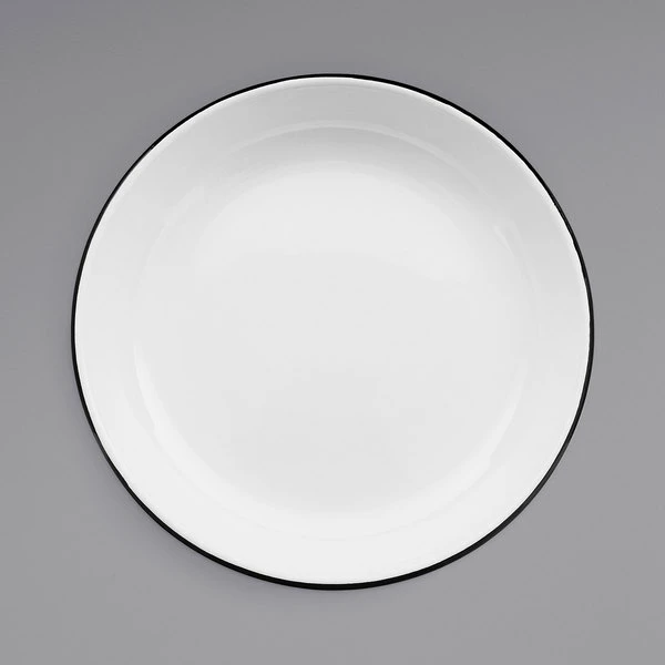 Be the first to review “Crow Canyon Home V114BLA Vintage 10 1/2″ White Round Enamelware Deep Coupe Pasta Plate With Black Rolled Rim” Cancel reply