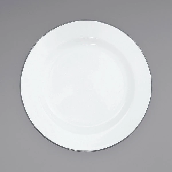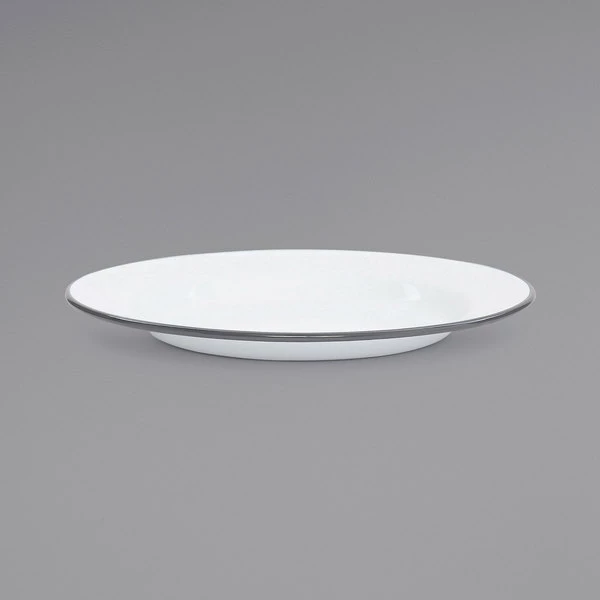 Be the first to review “Crow Canyon Home V20GRY Vintage 10 1/4″ White Wide Rim Enamelware Footed Plate With Grey Rolled Rim” Cancel reply
