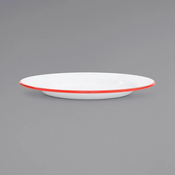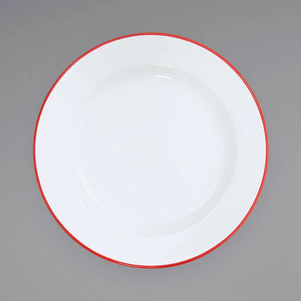 Be the first to review “Crow Canyon Home V20RED Vintage 10 1/4″ White Wide Rim Enamelware Footed Plate With Red Rolled Rim” Cancel reply