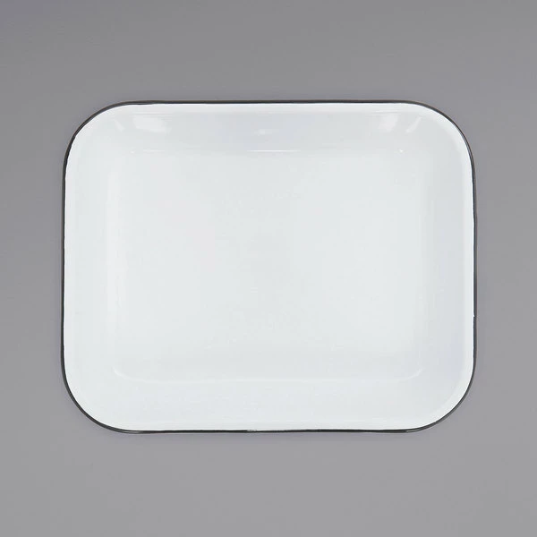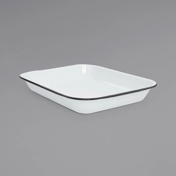 Crow Canyon Home V22BLA Vintage 2 Qt. White Enamelware Roasting Pan With Black Rolled Rim