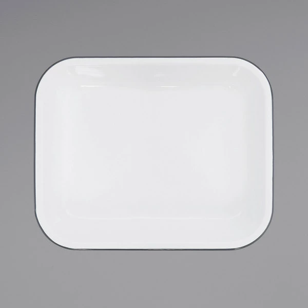 Crow Canyon Home V34BLA Vintage 3 Qt. White Enamelware Roasting Pan With Black Rolled Rim