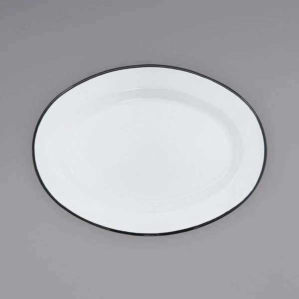 Be the first to review “Crow Canyon Home V94BLA Vintage 11 7/8″ X 8 11/16″ White Enamelware Oval Plate With Black Rolled Rim” Cancel reply