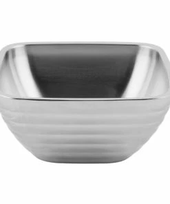 Vollrath 4761955 24 Oz. Stainless Steel Double Wall Fire Engine Red Square Beehive Serving Bowl