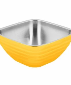 Vollrath 4761945 24 Oz. Stainless Steel Double Wall Nugget Yellow Square Beehive Serving Bowl